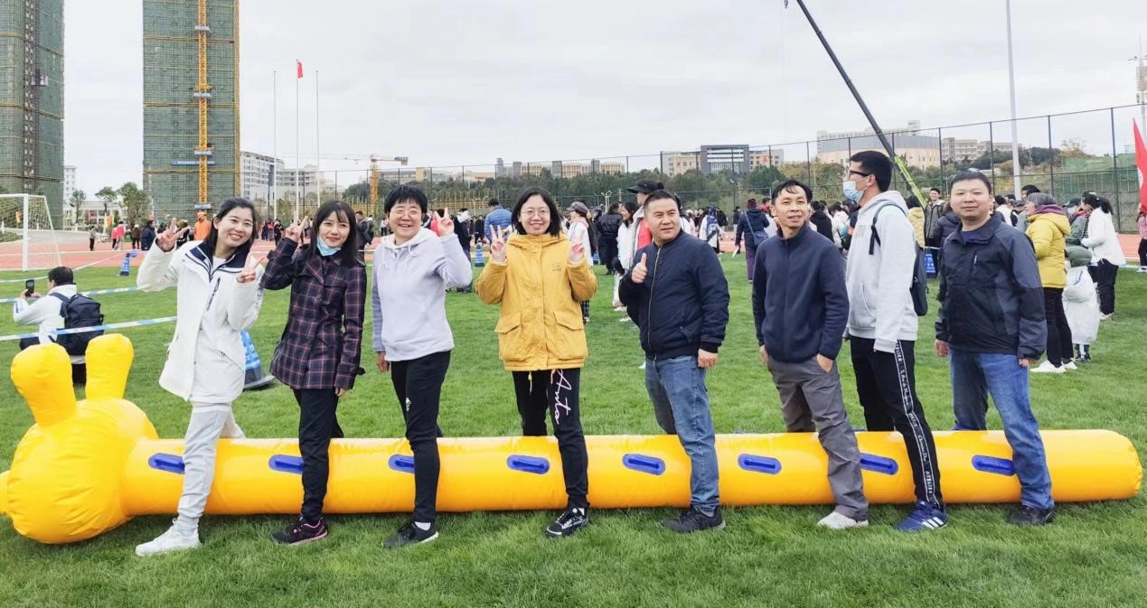 同学们在东门田径场上激烈角逐的同时,老师们也在进行趣味运动会的活动。