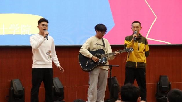 由青协办公室联合自律委办公室、研会文艺部、研会宣传部、团委办公室、自律委外联部联合青协实践部带来歌曲表演,或是少年感十足,吉他与歌声的结合,或是婉转悠长的合唱,抑或是情绪洋溢满堂,他们精彩的演唱便是少年多才,且恰逢青春正当时。