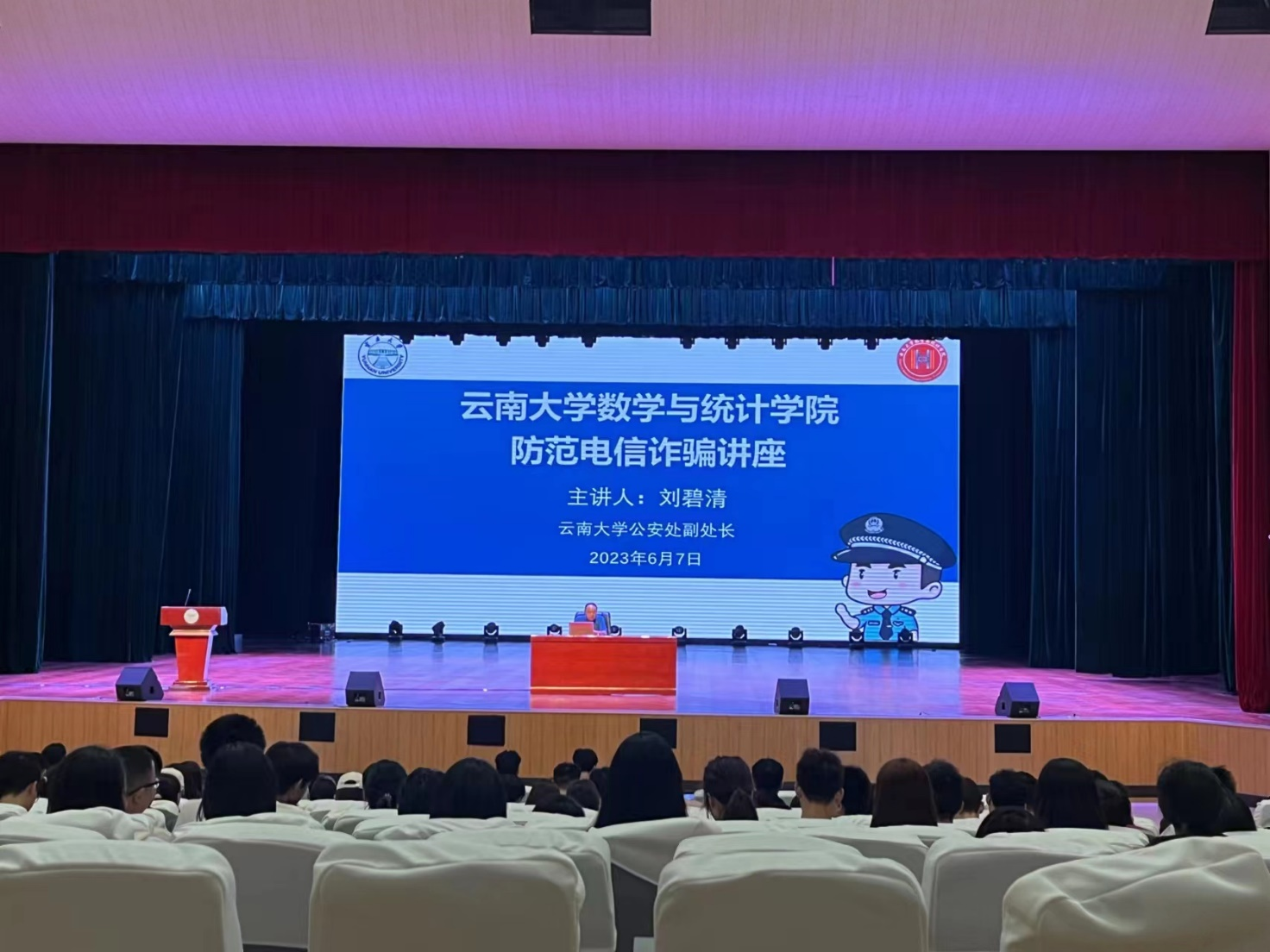 为切实提高广大师生对电信网络诈骗犯罪的识别与防范能力,普及防诈骗知识,维护师生的切身利益,预防各类网络电信诈骗事件,营造和谐平安的校园环境。 2023年6月7日中午13:00,公司在员工会堂举办防范电信诈骗主题教育讲座,讲座邀请williamhill官网网站公安处刘碧清副处长主讲,公司党委副书记杜芳芳老师主持,各年级辅导员、班主任及1000余名同学参加本次讲座。