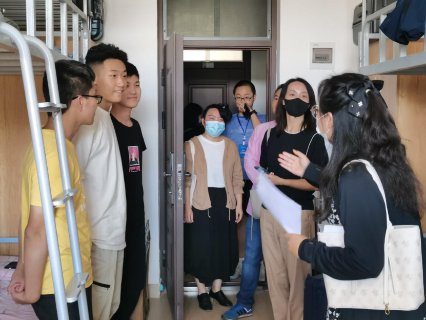 下午3点,williamhill官网网站副经理潘东东,党委副书记杜芳芳,2021级本科生辅导员王蔓琦,以及2021级班主任余彬、唐琳、王磊、李素华前往员工宿舍看望新生,并对新生进行亲切关怀。在与同学们的交谈中,老师们不断鼓励同学们尽快适应宿舍新环境,学好专业知识。