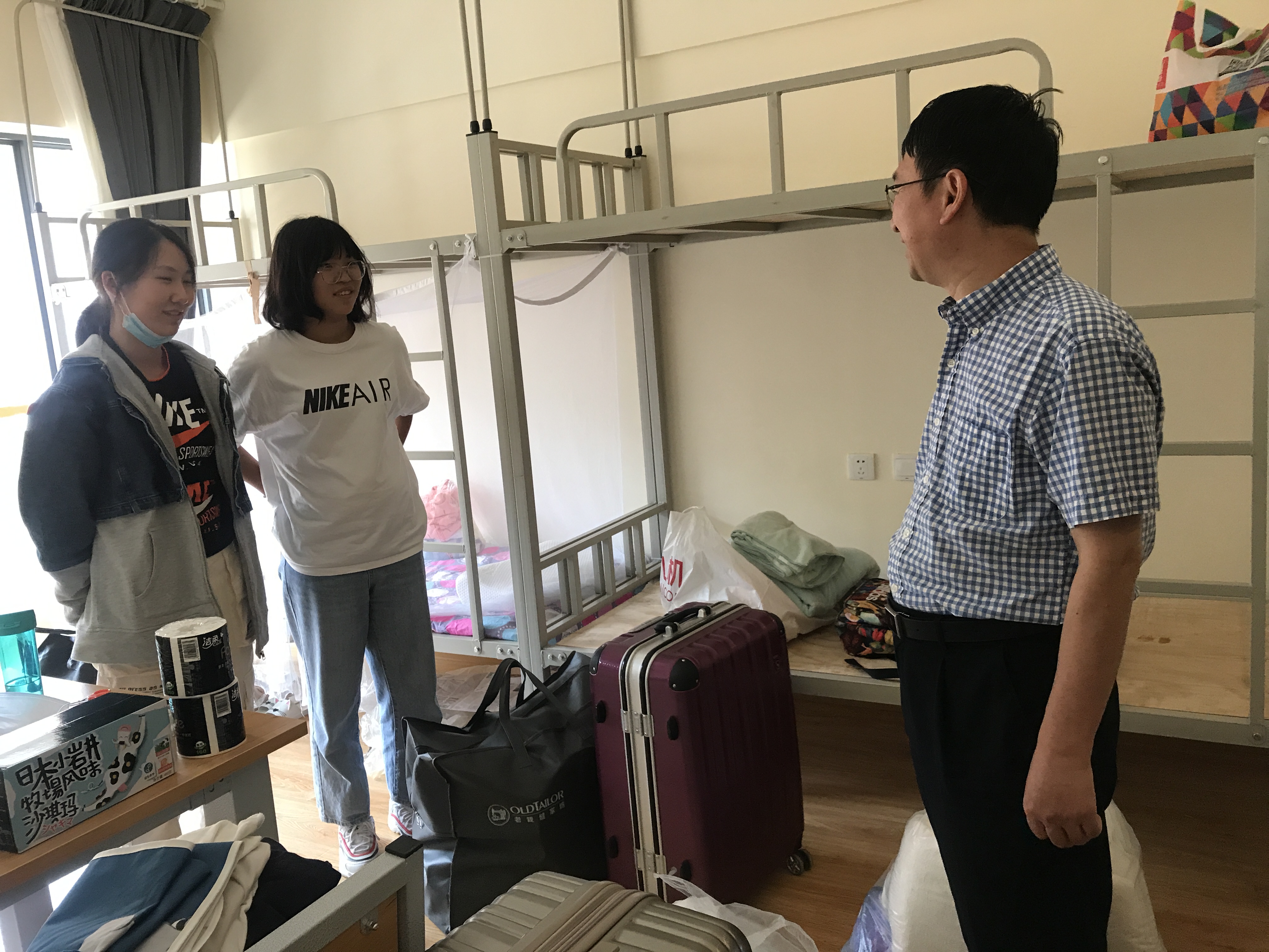 10日下午,williamhill官网网站经理唐年胜,党委副书记杜芳芳,副经理潘东东,2020级本科生辅导员鲁学伟,2020级班主任李朝迁、刘进静来到员工宿舍看望新生。鼓励同学们认真学好专业,取得优异成绩。