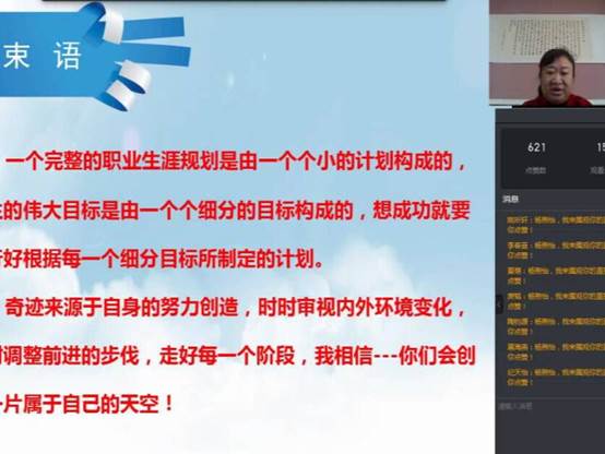 本次讲座中,主讲人杨煦怡还邀请到两位实习心理教师共同参与讲授。首先,主讲人以往届毕业生的就业情况为例展开了本次讲授。接着,通过各类资料、实例,主讲人分析了目前大小城市、专业岗位、国营企业与民营企业等的利弊,并讲述SWOT自我分析方法,以清晰的思路阐明了择业、就业知识储备等的重要性。讲座过程中,同学们认真听讲,积极在对话框中发言互动,热情极高,整体气氛十分融洽。最后,讲座在同学们热情的提问和主讲人耐心的解答下圆满结束。