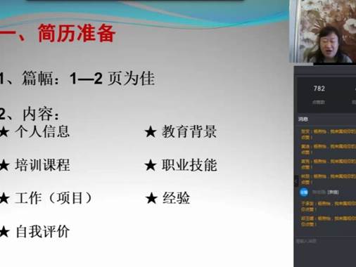此次讲座,主讲人杨煦怡为同学们讲述了一些关于简历和面试的知识。关于简历,要求把握好字数,填写好个人信息,参加过的培训课程,以前从事过的工作以及希望入职的工作,对自己的评价,教育背景及经历,职业技能以及各种经验。这就要求我们平时要广泛培养兴趣,不断学习新技能和掌握新技巧来进步,提升自己,让自己能够在竞争中脱颖而出。