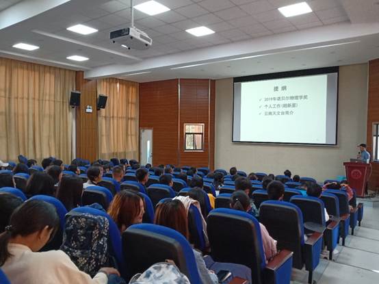 王博研究员首先介绍了2019年诺贝尔物理学奖的获得者。然后他从黑洞出发,引出超新星,即他目前研究的领域,并对超新星进行了详细的介绍。超新星在国际上受到的的关注很大,在超新星研究上取得巨大成果的团队往往受世界瞩目。最后他对中国科公司云南天文台做出了简要介绍。
