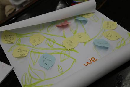本次体验课进行了三个游戏。首先,杨熙怡老师将参与课程的员工分为3组,并简单介绍了游戏每个环节的规则。第一个游戏是许愿树,每个小组有15分钟的时间,在提供的白纸上画一棵树并贴上自己的愿望。时间结束后,每小组派代表上去展示自己的成果,现场的气氛异常活跃,展示过程也是掌声不断。