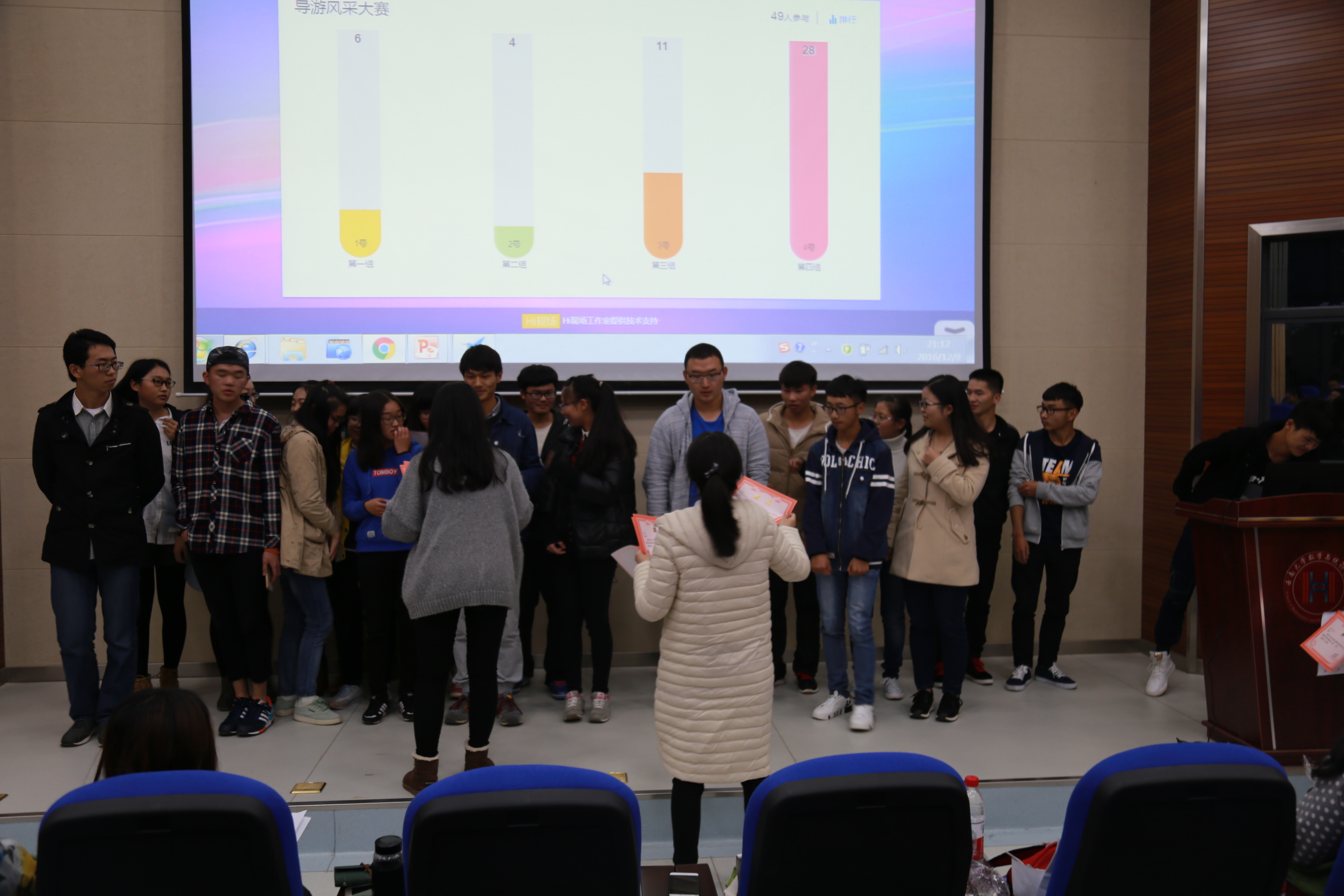 12月9日晚上7点,williamhill官网网站导游风采大赛在williamhill官网网站报告厅举行。担任本次导游大赛的评委有员工会主席朱国毓,副主席陈思岳,苏锐,团委副书记杨萍,陈梦蝶,新闻宣传中心主任唐鑫,副主任白金艳,孙若韩,青协自律委联合负责人杨贤哲以及青协会长李婧菁。另外,除了参加比赛的选手外,此次导游风采大赛也吸引了大量同学前来观看。