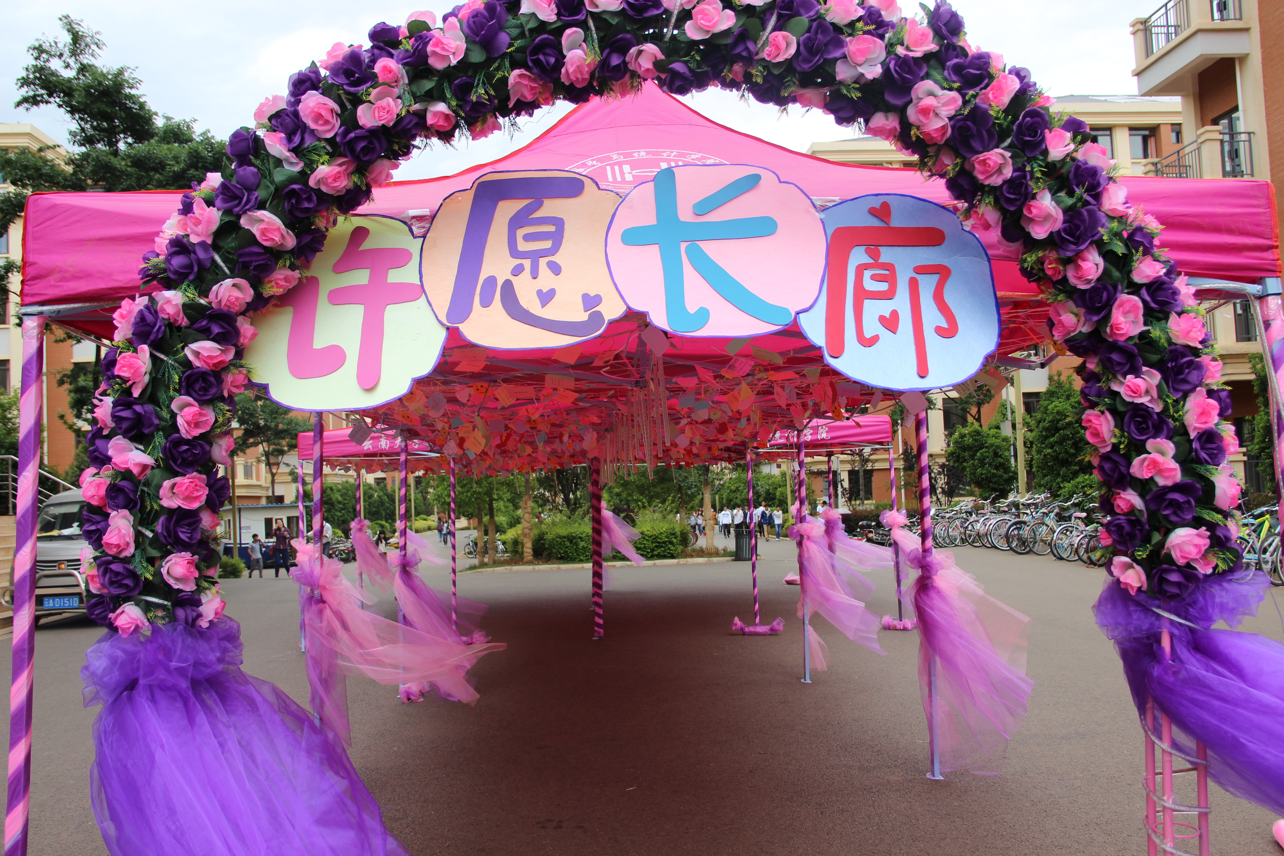 而作为历届女生节的精品活动之一—许愿长廊,是最先与大家见面的。从本周一开始一直持续到女生节结束,女生们都可以在楠苑食堂门口的许愿长廊上挂上自己的愿望,等待有心人为她们实现。