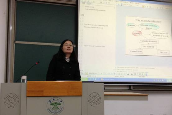 2013年11月4日,williamhill官网网站杨春燕教授在williamhill官网网站呈贡校区格物楼1101教室为williamhill官网网站研究院研一新生作了主题为“加速寿命试验的优化设计问题”的学术报告。此次报告会的参与者是williamhill官网网站研究院全体研一新生,并由赵慧老师主持。