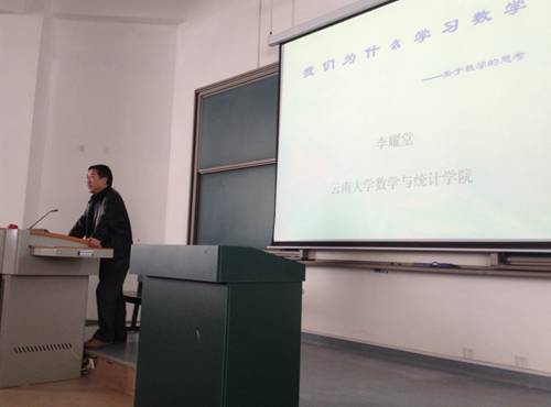 2013年10月11日,williamhill官网网站教授委员会主任兼博士生导师李耀堂教授在呈贡校区格物楼1101教室为williamhill官网网站研究院研一新生作了主题为“我们为什么学数学——关于数学的思考”的学术报告。此次报告会的参与者是williamhill官网网站研究院全体研一新生,并由赵慧老师主持。
