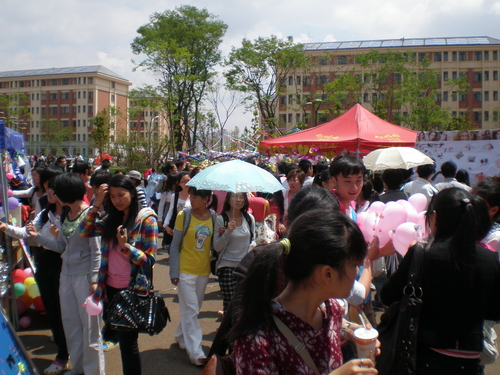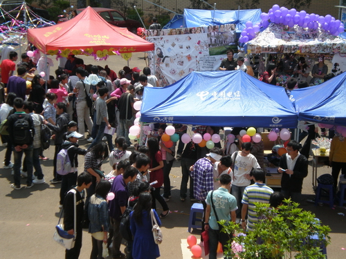 4月21日,I运动女生趣味运动会在楠苑食堂门口展开。
