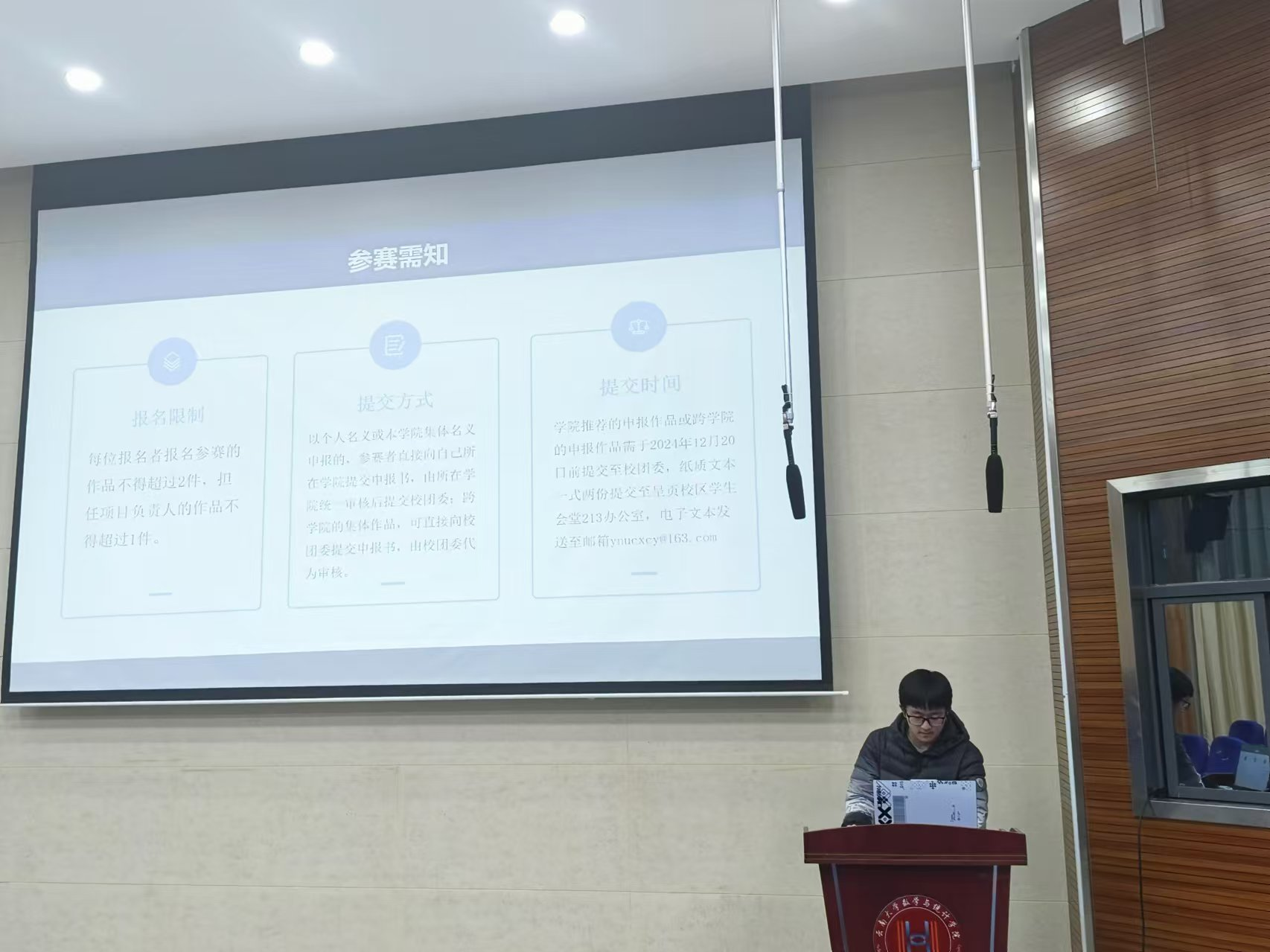 为充分激发员工的竞赛创新热情,全方位提升员工的竞赛实践能力,williamhill官网网站于2024年12月14日19:00-20:00,在格物楼3103报告厅举办了第十九届“挑战杯”宣讲培训暨答疑活动。活动面向全院员工开放,吸引了众多本科生与研究生踊跃参与。活动现场,同学们求知若渴,学习氛围极为浓厚,处处洋溢着对竞赛创新探索的期待。