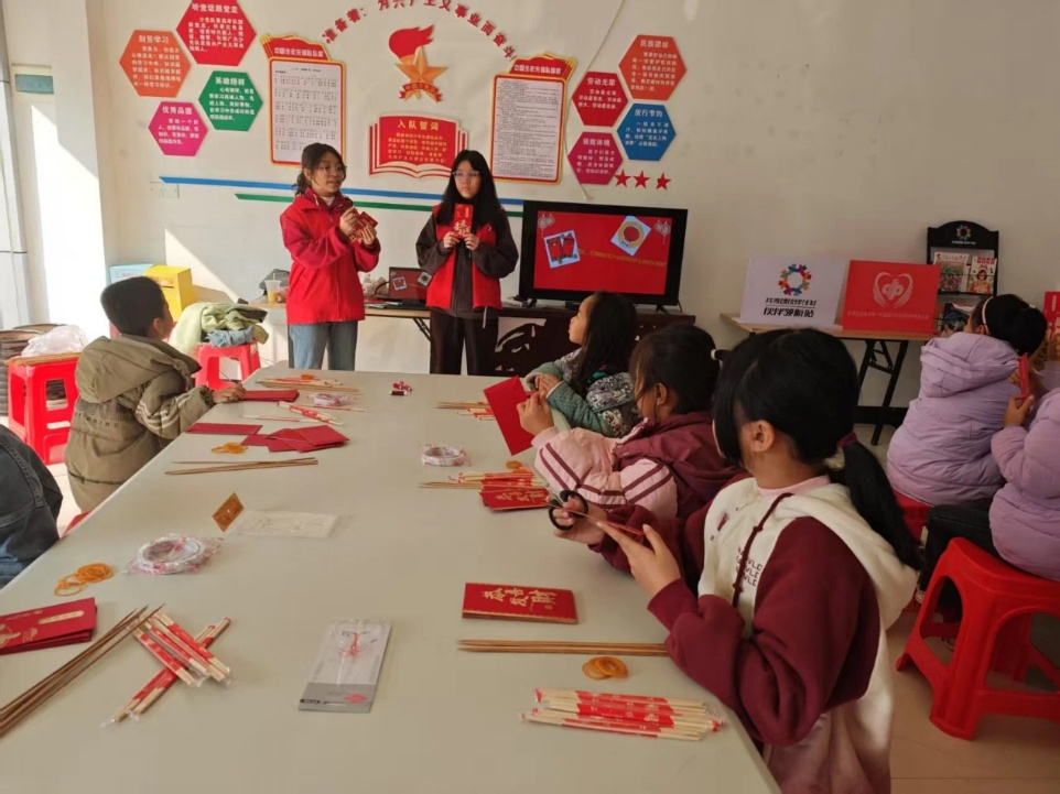“七彩假期”志愿服务活动中,志愿者们为留守儿童带来了红色文化公开课与春节文化体验课。通过讲述陕北革命历史和环县老区故事,激发孩子们的爱国情怀;指导孩子们用红包制作灯笼,传承传统文化。活动不仅丰富了孩子们的假期生活,更在他们心中种下了文化自信的种子。