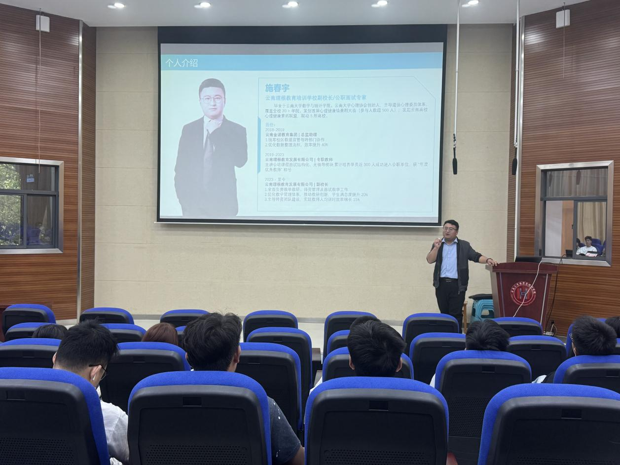 为助力应届毕业生提升求职竞争力,公司邀请理根教育呈贡校区副董事长施春宇老师作为主讲嘉宾,于4月11日下午14:00在格物楼3103报告厅举办“2025年春季校园招聘会求职攻略”专题讲座。施春宇老师作为williamhill官网网站优秀员工,深耕老员工就业培训领域7年的资深导师,施老师凭借其独创的“三维求职突破体系”及丰富的实战经验,为学子们带来了一场兼具理论深度与实践价值的求职指导课。