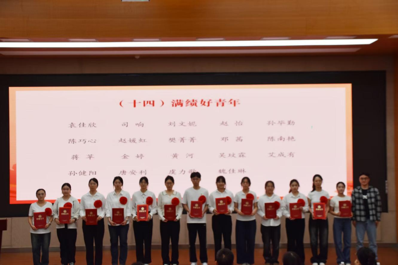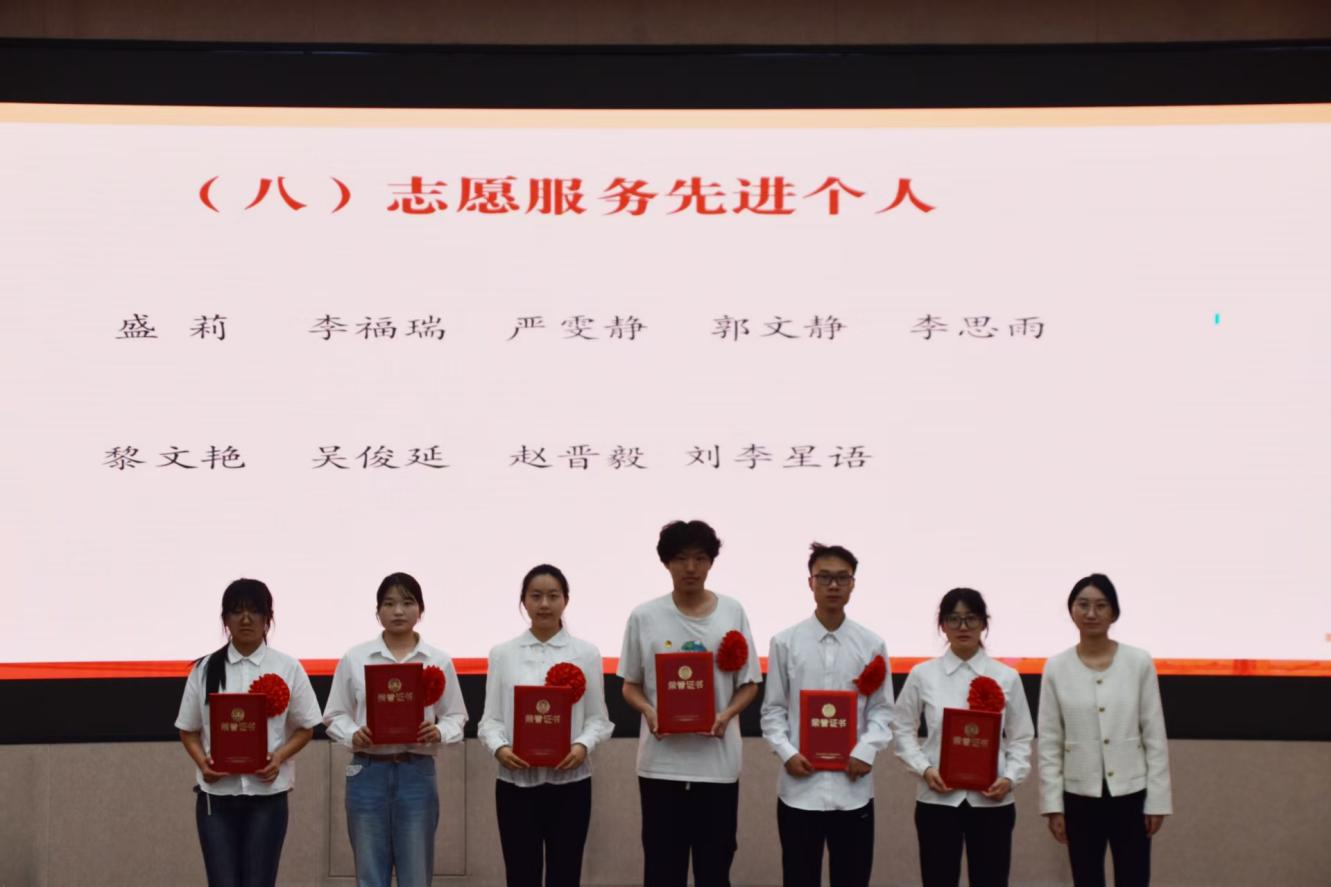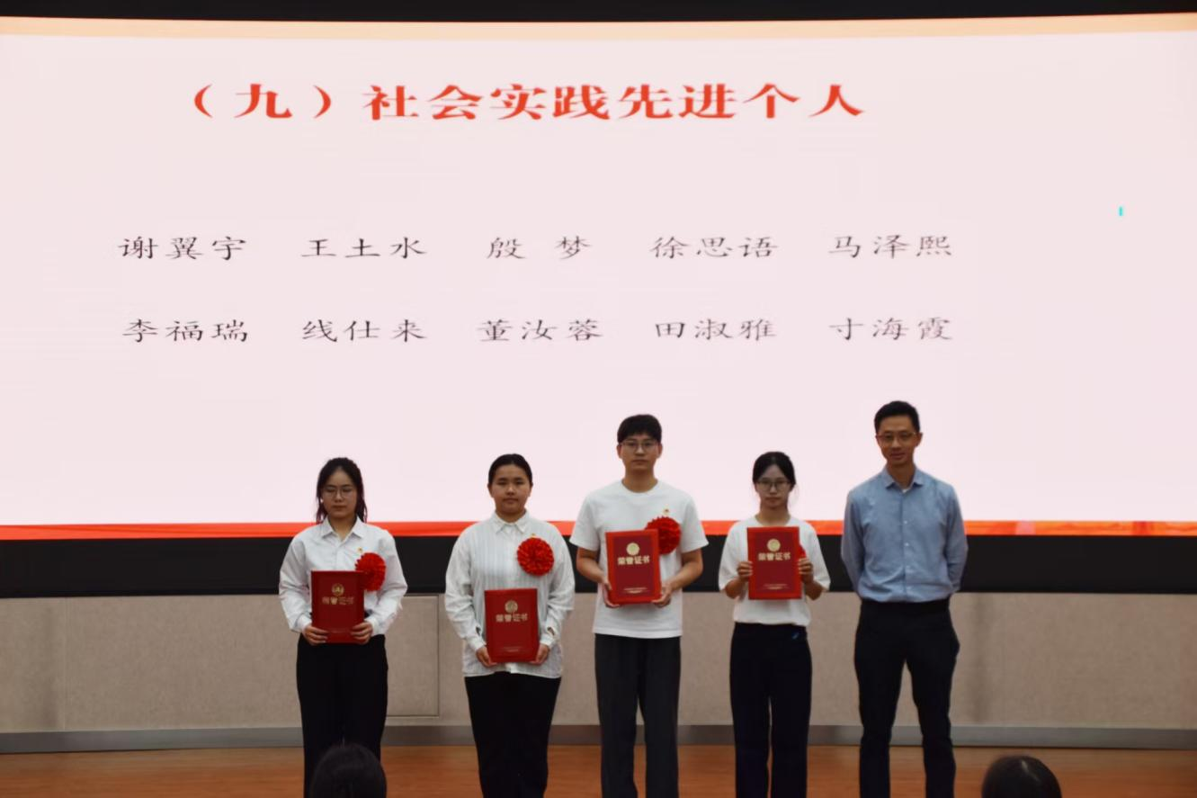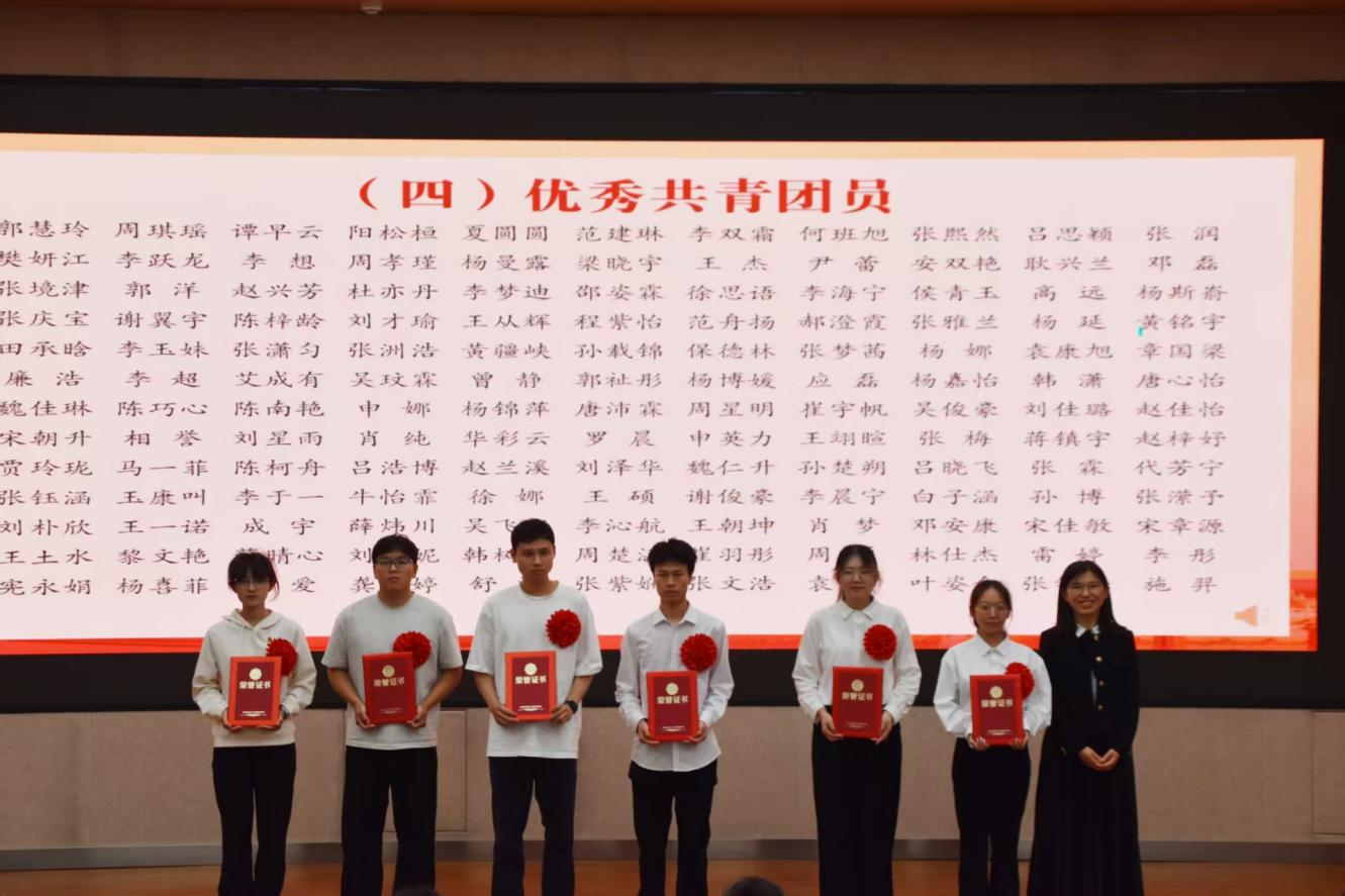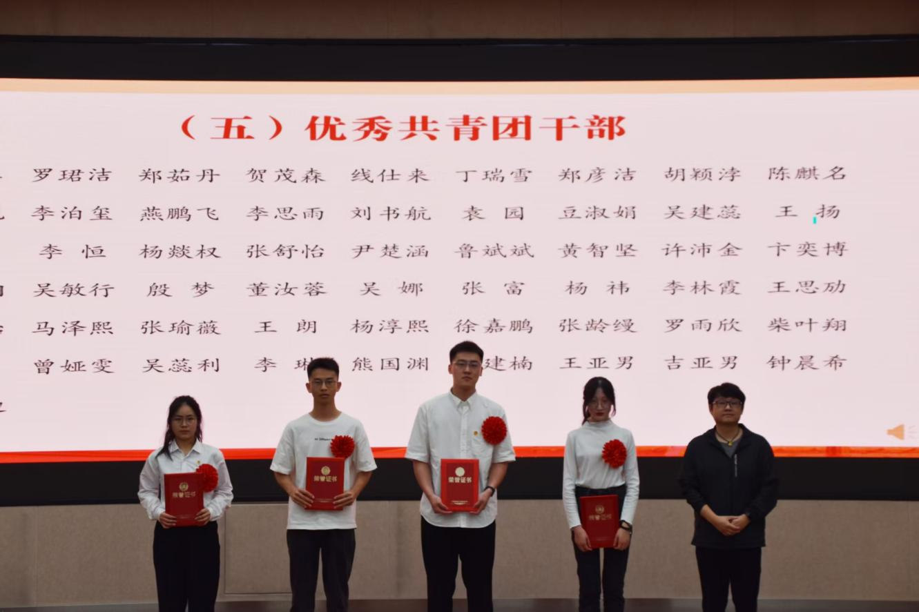 与会领导、老师为获得五四红旗团支部、志愿服务先进集体、文明宿舍、优秀共青团员、优秀共青团干部、优秀员工干部、五好员工、志愿服务先进个人、社会实践先进个人、学业进步奖、道德风尚奖、学术之星、创新创业之星、满绩好青年、优秀心理委员、文体之星、第二课堂优秀工作者、先进工作者荣誉称号的集体和个人代表颁奖。