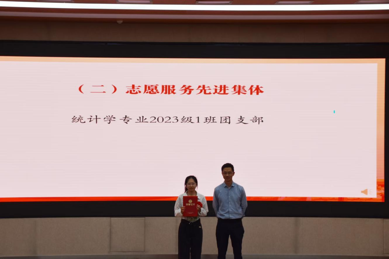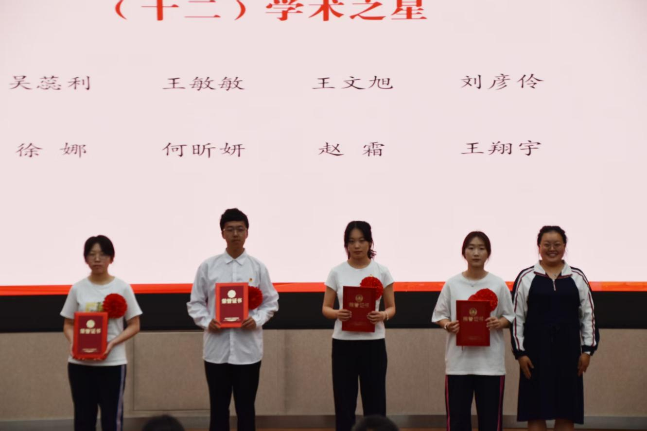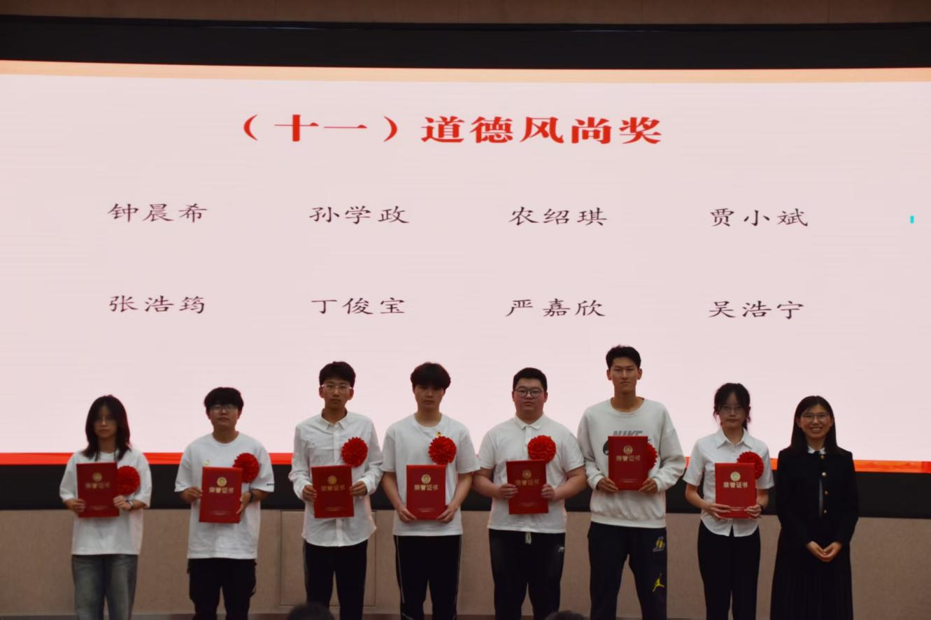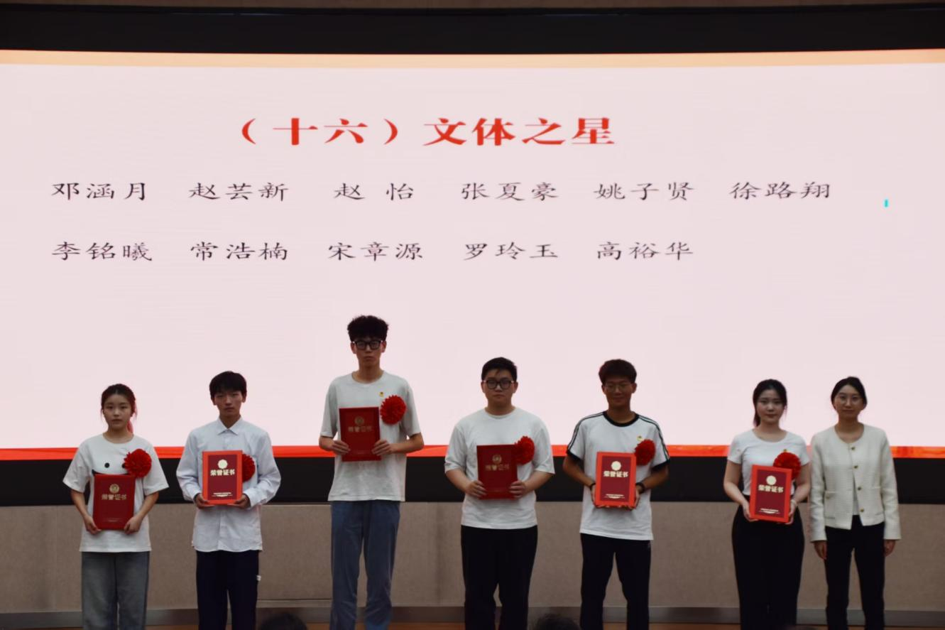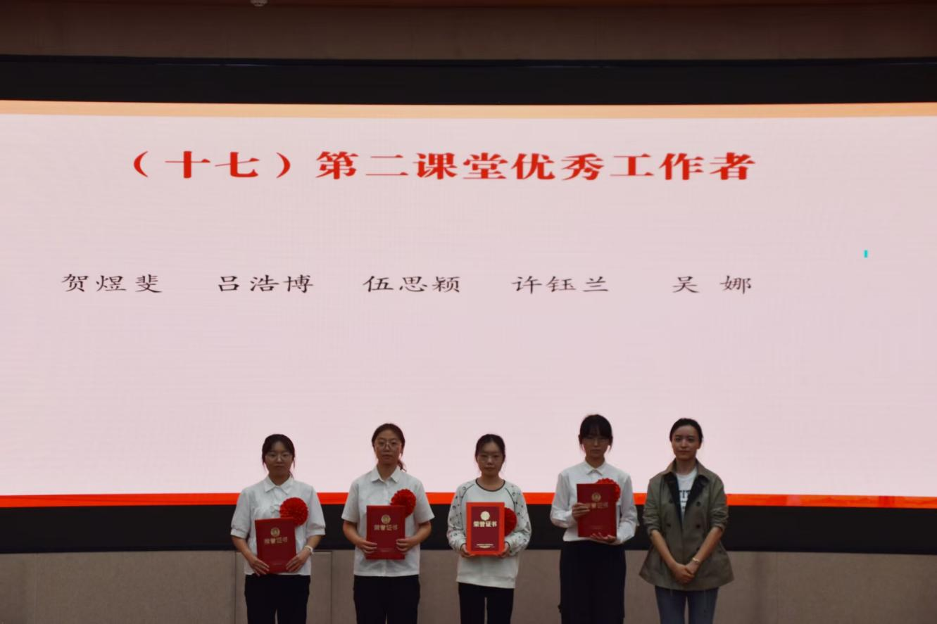与会领导、老师为获得五四红旗团支部、志愿服务先进集体、文明宿舍、优秀共青团员、优秀共青团干部、优秀员工干部、五好员工、志愿服务先进个人、社会实践先进个人、学业进步奖、道德风尚奖、学术之星、创新创业之星、满绩好青年、优秀心理委员、文体之星、第二课堂优秀工作者、先进工作者荣誉称号的集体和个人代表颁奖。