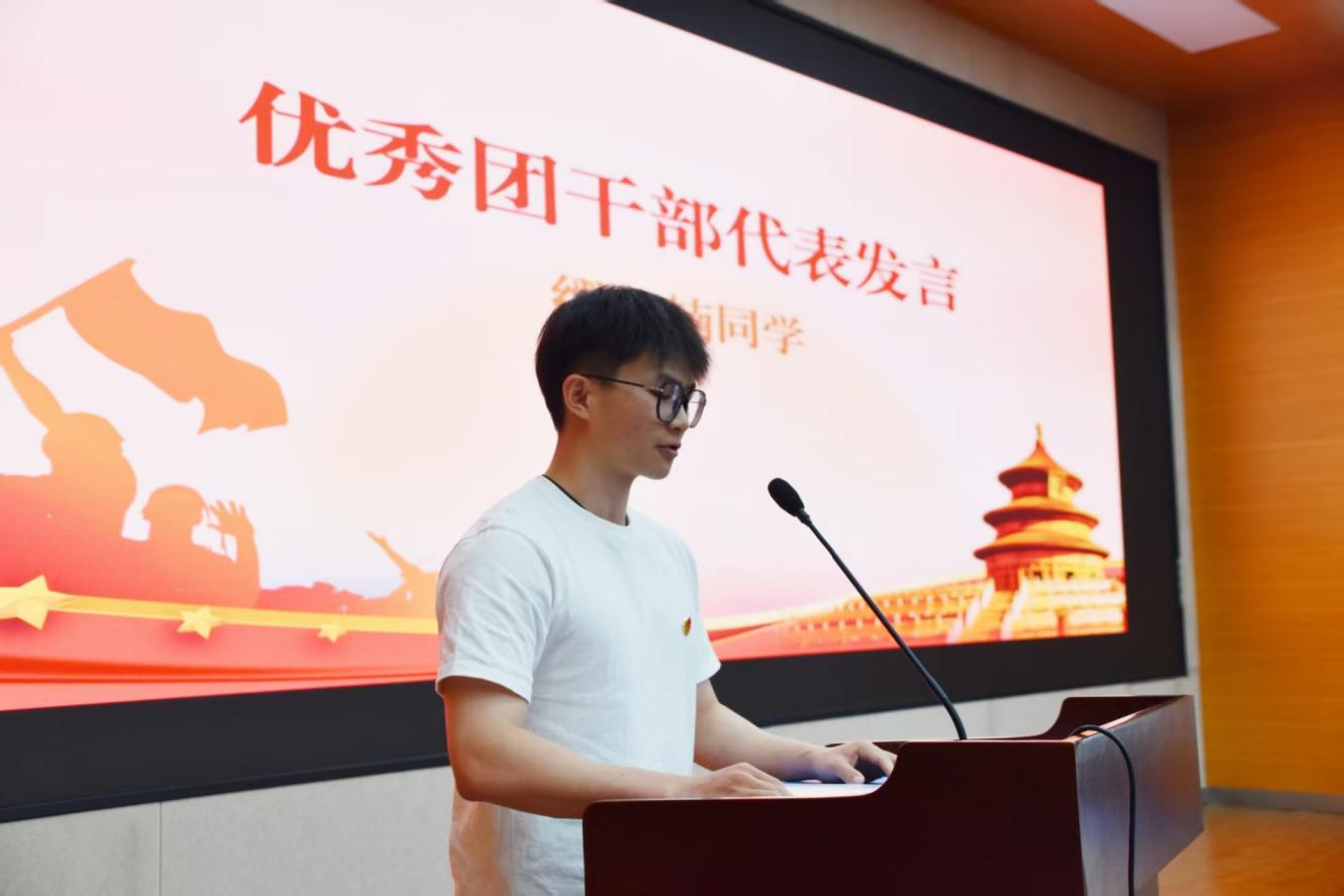 优秀团干部代表缪建楠同学发言,在未来,公司的团员青年们将毫不犹豫地承担起新时代青年的责任与担当,积极发挥团干部的表率作用,在服务和工作中积累经验,提升能力,谱写青春篇章。