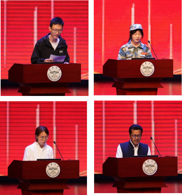 随后,本科生老生代表2022级熊庆来拔尖班姚泽同学,本科生新生代表2025级数据科学与大数据技术专业周欣怡同学、研究生新生代表2025级应用统计专业王华英同学,职工代表先后发言,分享入学感悟与未来规划,表达了对老员工活的憧憬与立志成才的决心。他们的话语里既有对未来的憧憬,也有扎根当下的力量,这正诠释了大家最好的青春模样。