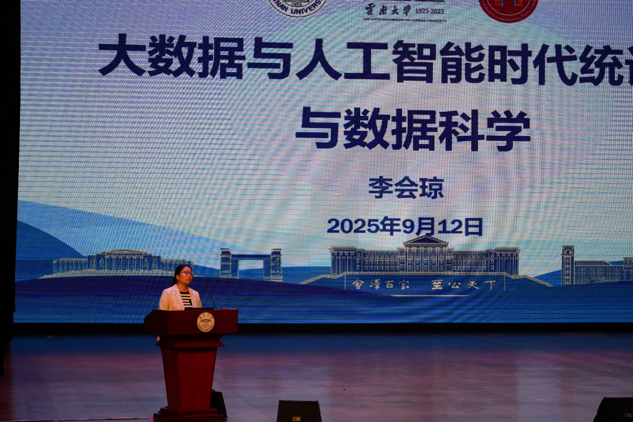 统计与数据科学系系主任李会琼老师,以“统计学的价值与学习路径”为主题发表讲话。她引用知名企业家任正非的观点,阐述了统计学在经济社会发展中的重要作用,并结合就业前景和薪资状况,鼓励新生坚定专业信心。她就如何学好统计学提出建议,强调既要掌握课堂知识,也要注重课外拓展与实践,培养综合能力。她希望,同学们在大学期间不忘初心,勤学上进,取得更好的发展。